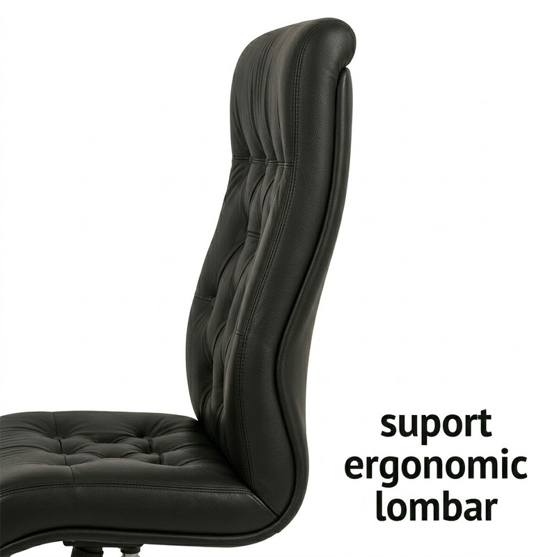 Confort ergonomic: Spatarul este special curbat pentru a oferi un suport lombar ergonomic, permitand o postura corecta chiar si in timpul sedintelor prelungite.
